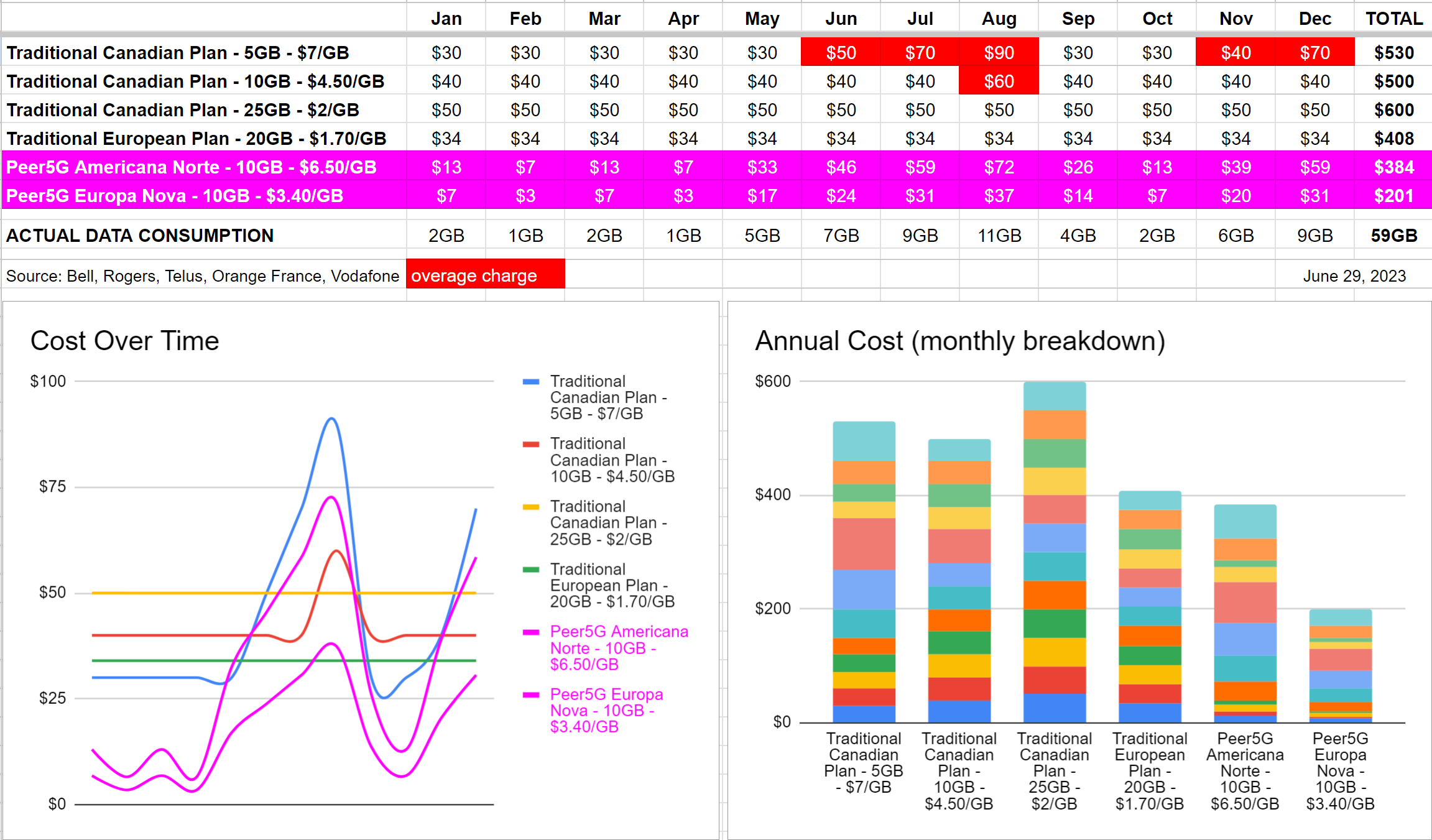 In contrast to local SIM cards, travel packages, and expensive roaming, we've found that true pay-as-you-go changes the game, whether at home or on the go, on a consistent and convenient platform. Since traditional phone operators need to charge everyone more on account of those who use much more data per month, and most people waste unused data every month, you can save money by changing your billing model like we did.